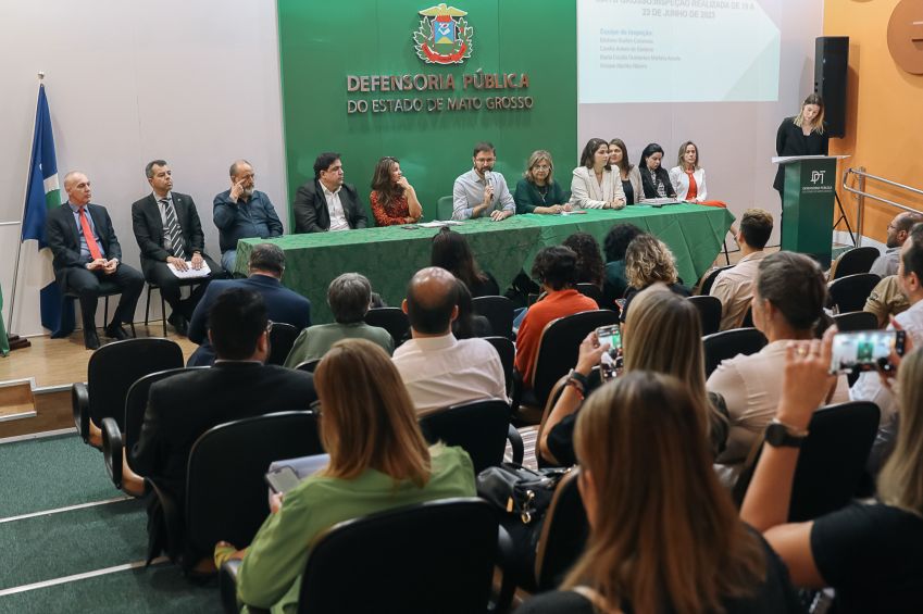 Na manhã desta sexta-feira (23), ocorreu uma audiência pública sobre as inspeções realizadas em locais de privação de liberdade em Mato Grosso pelo Mecanismo Nacional de Prevenção e Combate à Tortura (MNPCT), com o apoio da Escola Superior, Defensoria Pública de Mato Grosso e Pastoral Carcerária, no auditório Defensora Rejane Iara Snidarsis, na sede da Defensoria Pública, em Cuiabá.